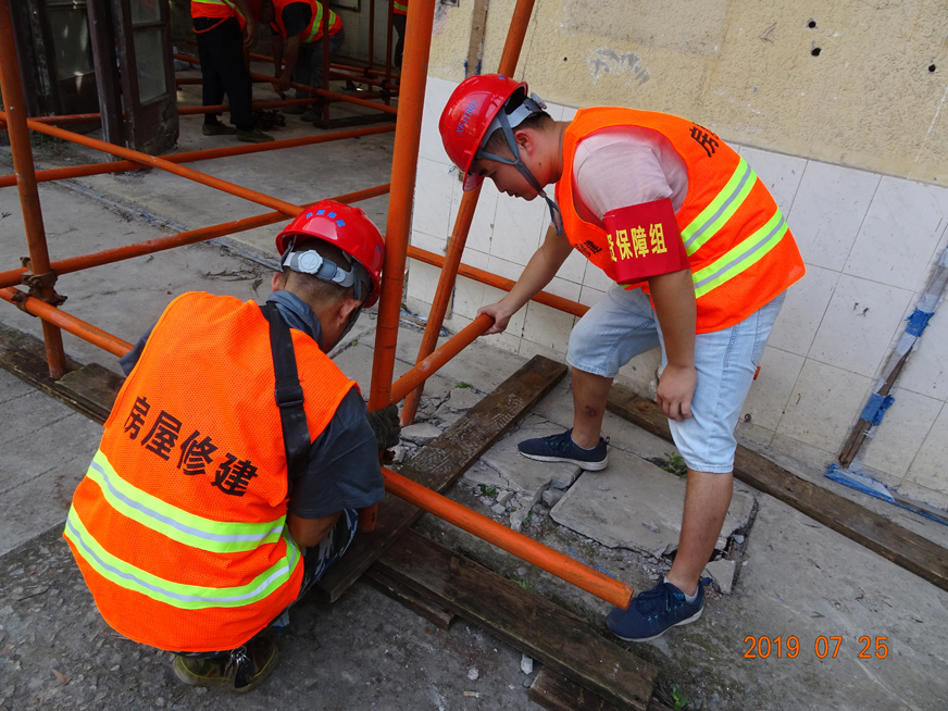 房屋搶險(xiǎn)組組長王小龍頂撐加固指揮