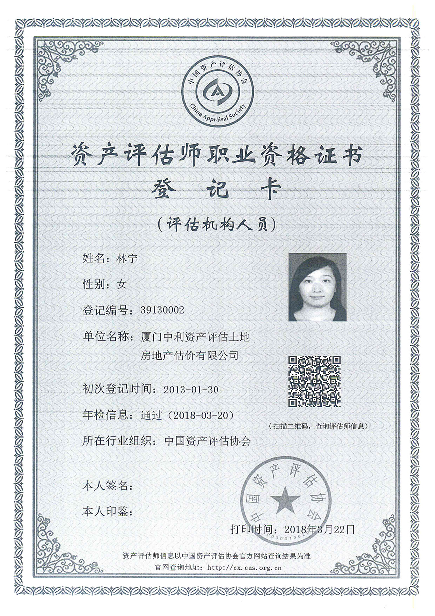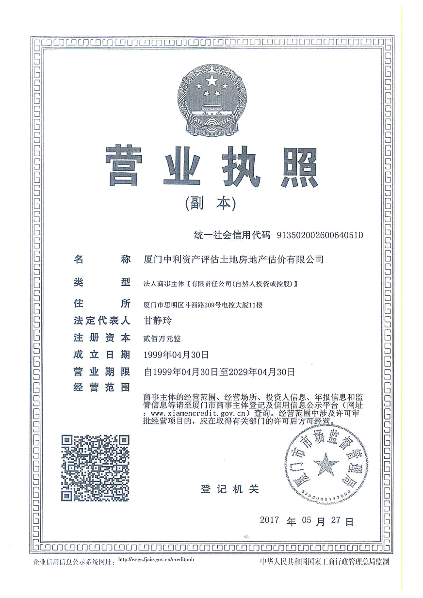 3. 廈門中利資產(chǎn)評估土地房地產(chǎn)估價有限公司營業(yè)執(zhí)照、評估資格證書復印件及注冊評估師林寧、鄭婷婷資質(zhì)證書復印件;