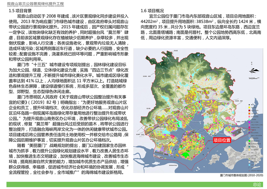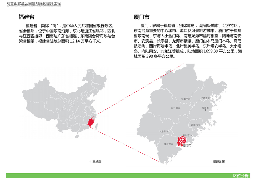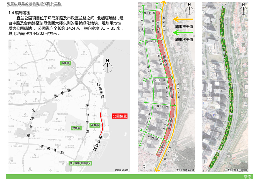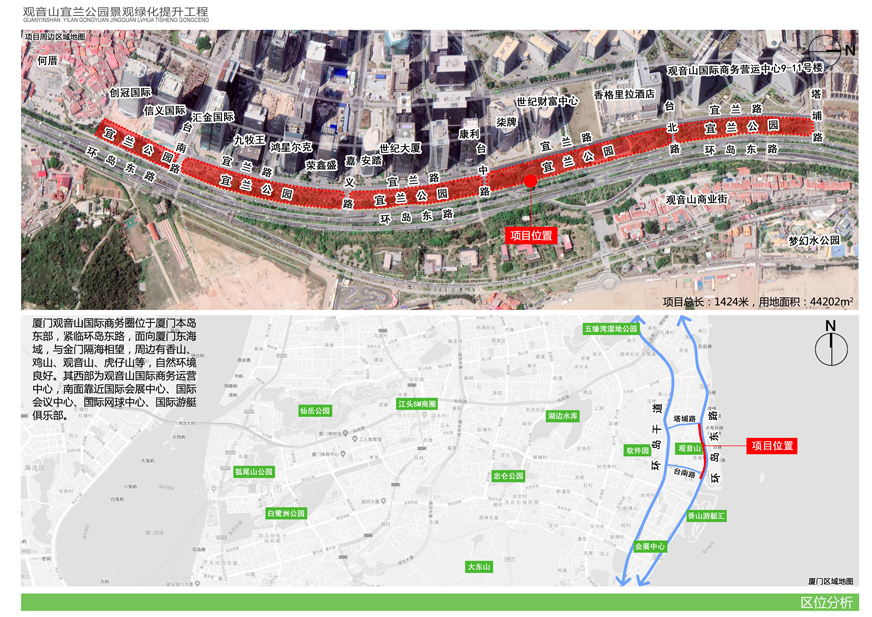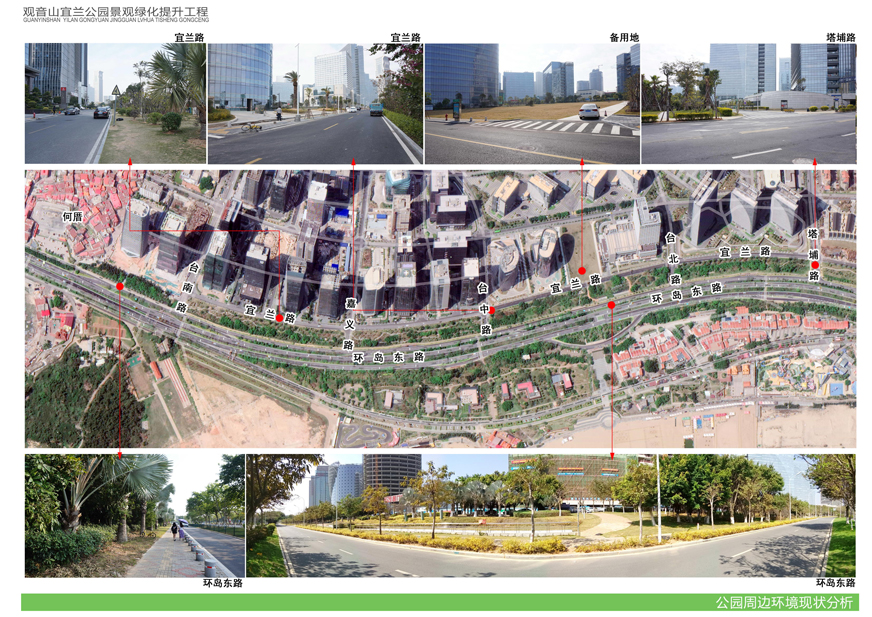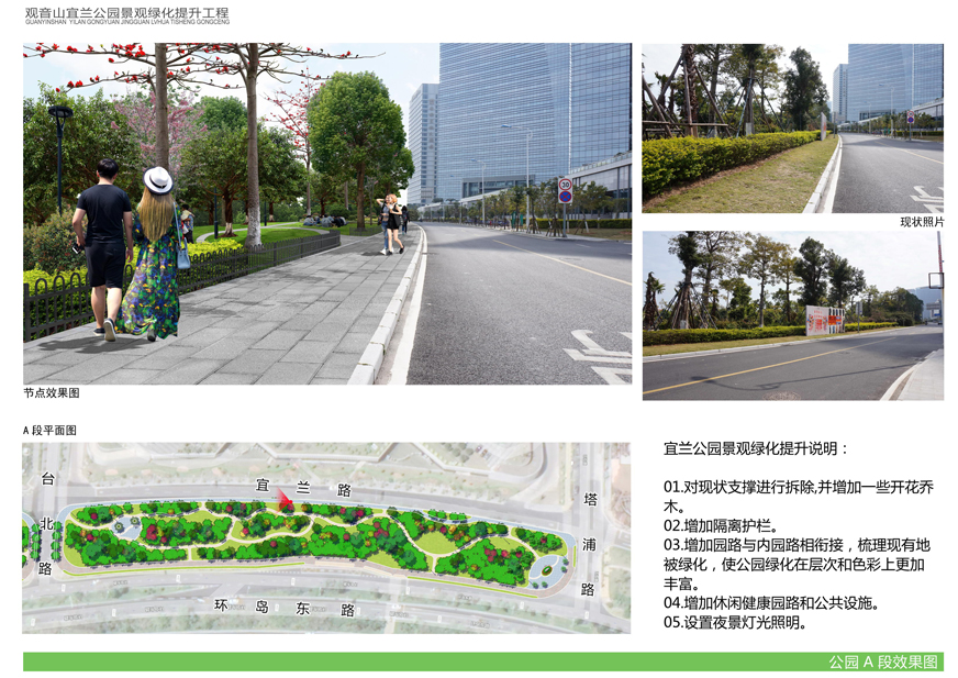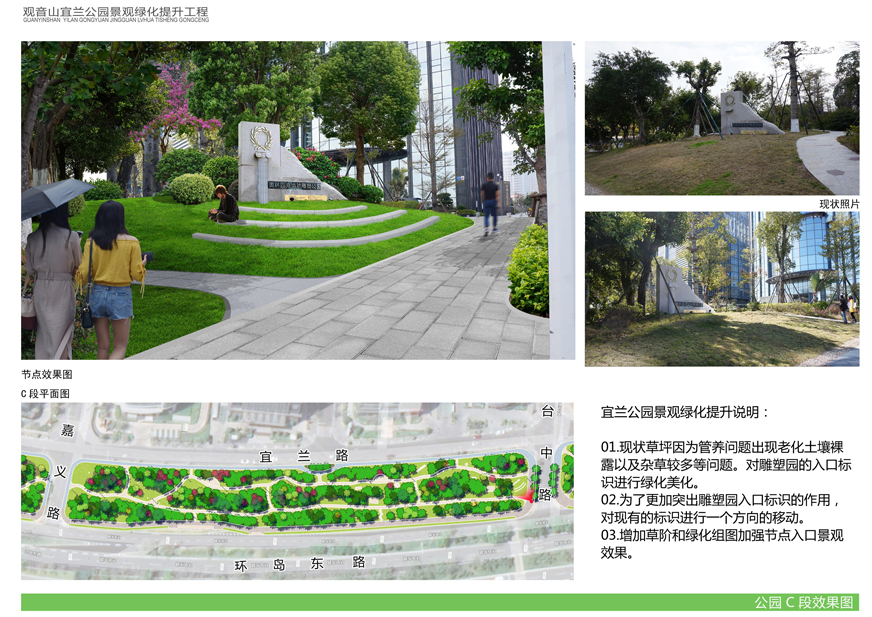 為切實改善上述問題,提升觀音山片區(qū)辦公環(huán)境檔次,廈門市開元國有投資集團有限公司擬對觀音山宜蘭公園進(jìn)行綠化提升,并委托廈門市城邦園林規(guī)劃設(shè)計研究院有限公司進(jìn)行了方案設(shè)計。根據(jù)廈府辦[2019]115號文要求,現(xiàn)將設(shè)計方案予以公布并廣泛征求意見。
