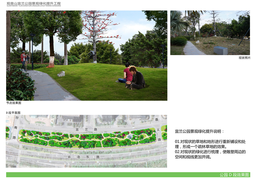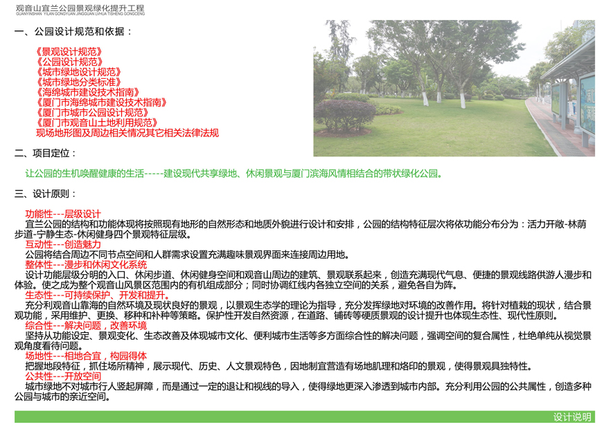 具體內(nèi)容詳見附件:《觀音山宜蘭公園景觀綠化提升工程設(shè)計方案》