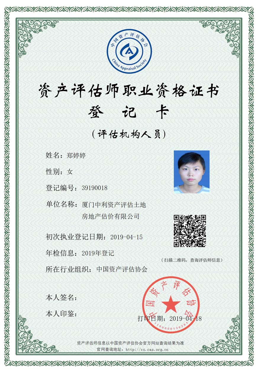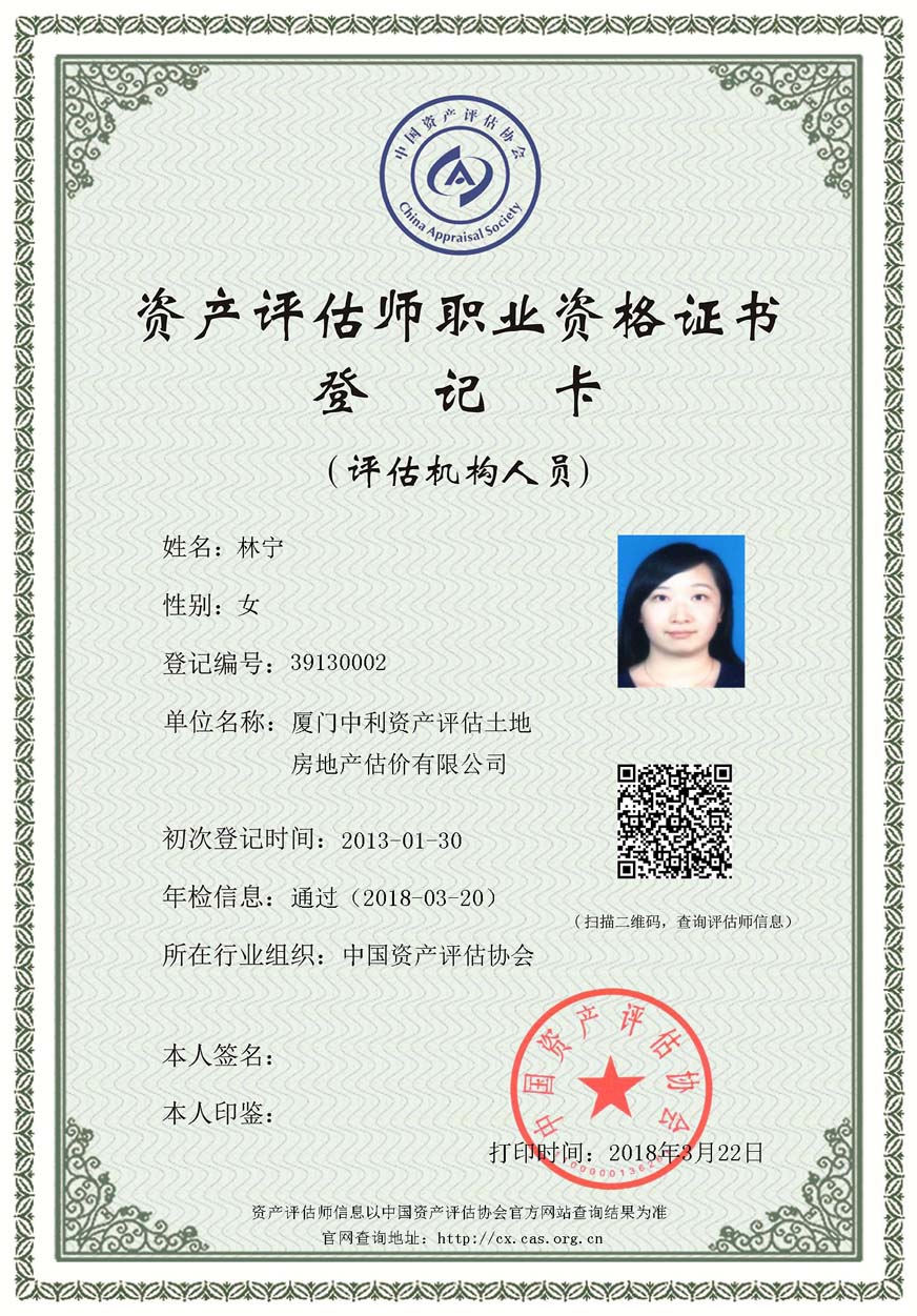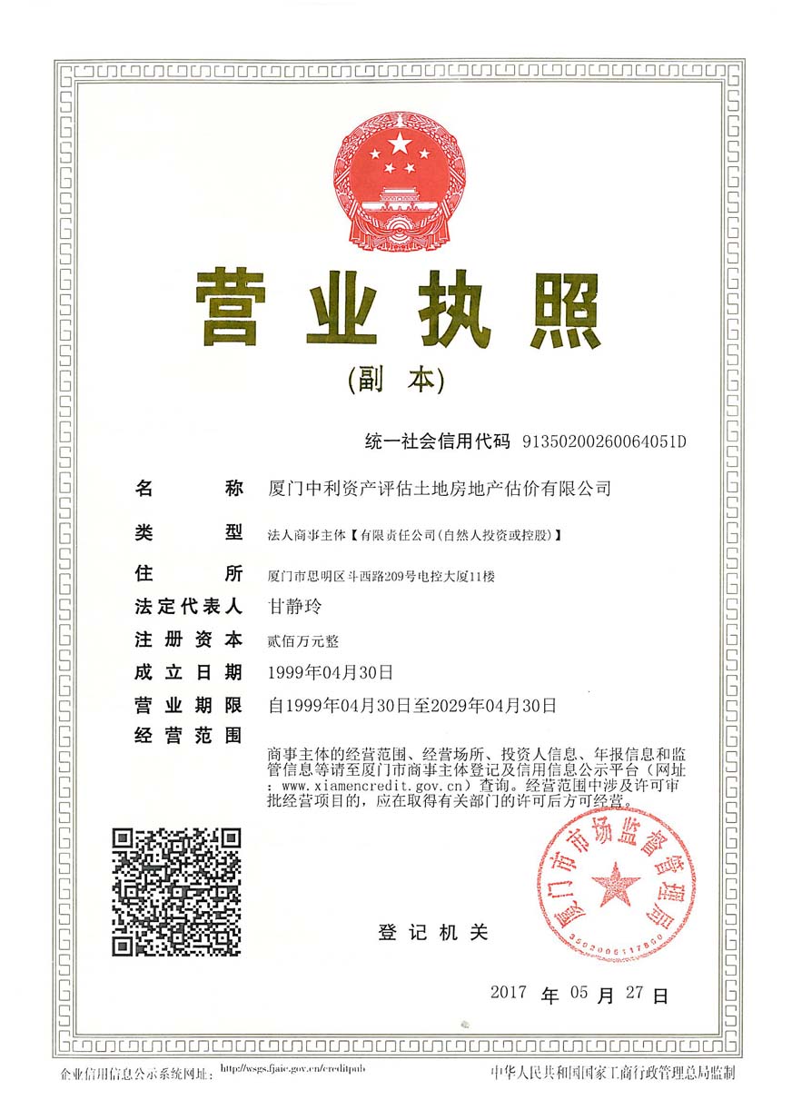 3. 廈門中利資產(chǎn)評(píng)估土地房地產(chǎn)估價(jià)有限公司營業(yè)執(zhí)照、評(píng)估資格證書復(fù)印件及注冊評(píng)估師林寧、鄭婷婷資質(zhì)證書復(fù)印件;