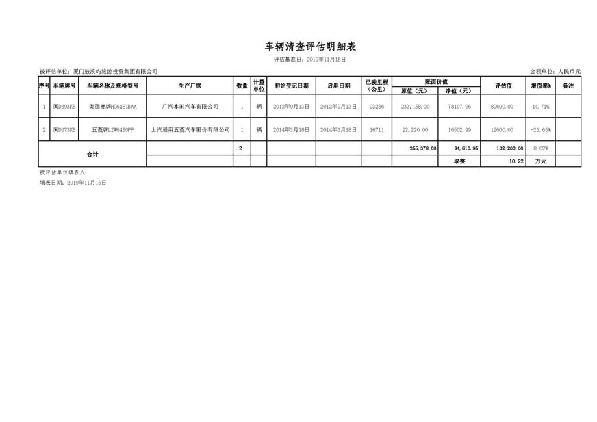 4.《鼓浪嶼旅游集團(tuán)車輛清查評(píng)估明細(xì)表》。