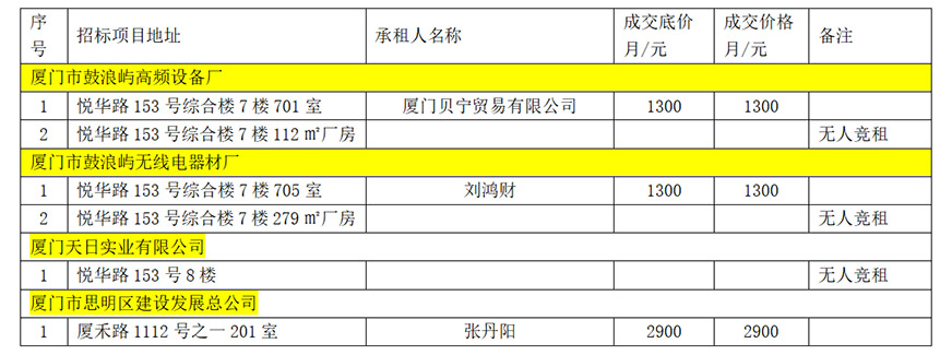 思明區(qū)區(qū)屬托管企業(yè)公開招租成交公告