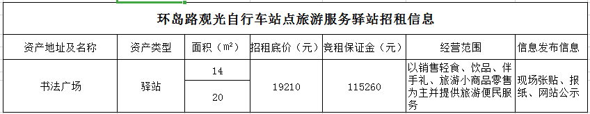 備注:意向承租人對(duì)上述情況應(yīng)有充分了解。詳細(xì)招租規(guī)則、合同、承諾函、報(bào)價(jià)單等招租文件于報(bào)名參加時(shí)領(lǐng)取。