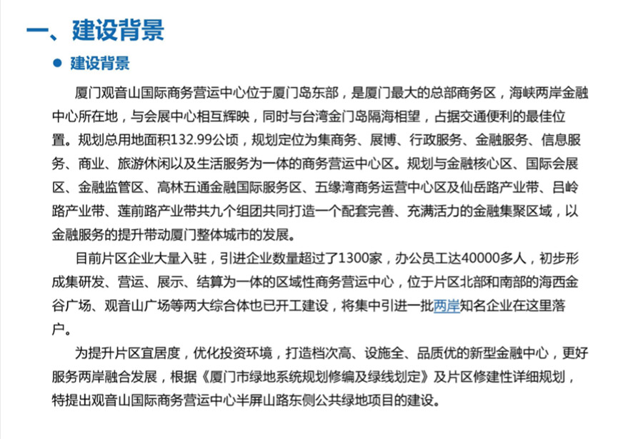具體內(nèi)容詳見附件:《觀音山國(guó)際商務(wù)營(yíng)運(yùn)中心半屏山路東側(cè)公共綠地設(shè)計(jì)方案》
