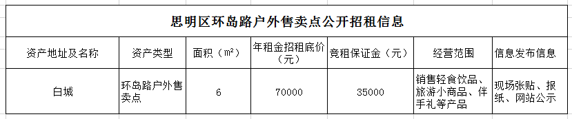 思明區(qū)環(huán)島路戶外售賣點(diǎn)公開(kāi)招租公告