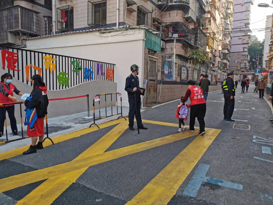 一大早,思明交警、碧山派出所民警、社區(qū)志愿者們便已經(jīng)到達現(xiàn)場,共同助力南華幼兒園開園,成為現(xiàn)場一道亮麗的風景線。