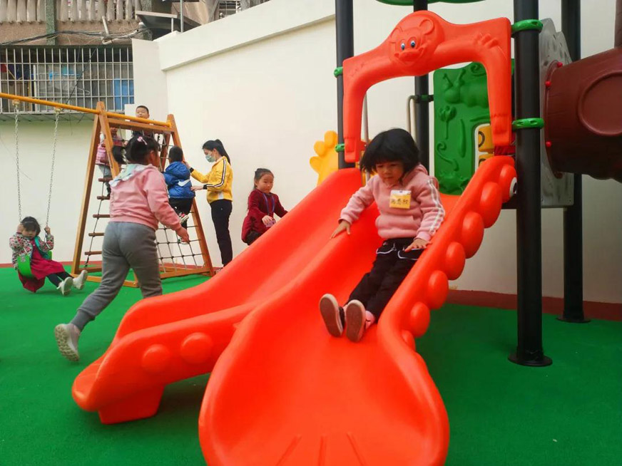 ▲孩子們在充滿趣味的操場上,開啟歡樂的戶外時光,二月的陽光,帶著春的暖意,駐留在孩子們的笑臉上。