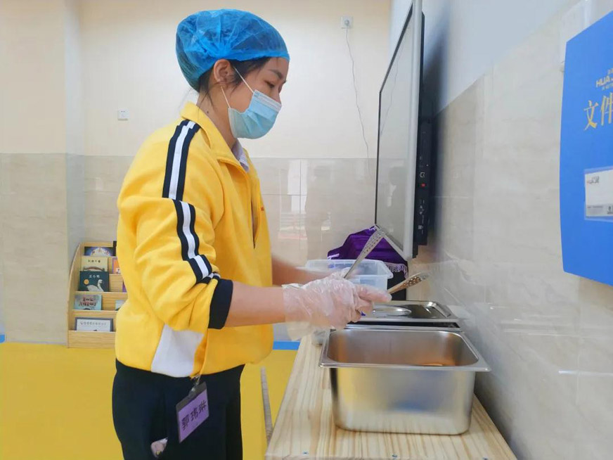 ▲結(jié)束了愉快的戶外時光,寶貝們回到教室,把小手洗凈,開心地等待著美味點心。