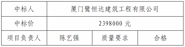 招標(biāo)項(xiàng)目編號(hào)為“(2021-ZWJ017曾厝垵4#樓玩月坡餐廳裝修工程”的招標(biāo),招標(biāo)人根據(jù)評標(biāo)委員會(huì)推薦的中標(biāo)候選人確定本項(xiàng)目中標(biāo)人,于2021年04月30日至2021年05月03日止進(jìn)行公示,中標(biāo)人的中標(biāo)情況公布如下: