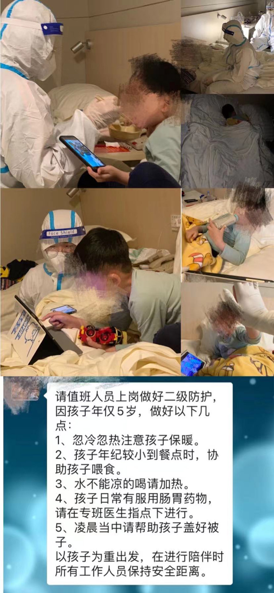 今年4月份,一名年僅5歲的小朋友獨自搭乘飛機(jī)到廈門中轉(zhuǎn),分流到隔離酒店接受隔離觀察,在沒有辦法獨自生活自理的情況下,防疫工作人員充當(dāng)起“臨時保姆”,在保證工作人員安全的前提下照顧、陪伴小朋友。