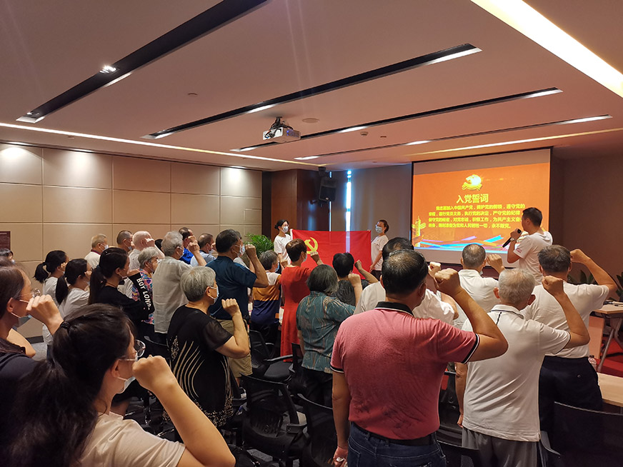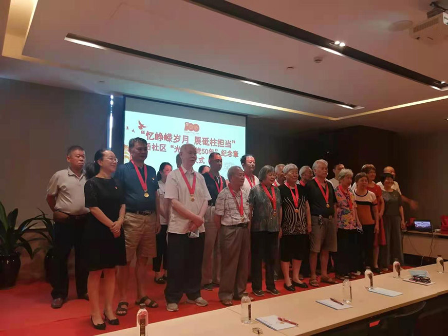 黨課結(jié)束,仙岳社區(qū)各黨支部書記和開元國投有關(guān)領(lǐng)導(dǎo)上臺(tái),為仙岳社區(qū)28名黨齡達(dá)到50年以上的老黨員頒發(fā)“光榮在黨50年”紀(jì)念章。在“七一”建黨百年紀(jì)念日即將到來之際,黨中央決定向黨齡達(dá)到50年以上的老黨員頒發(fā)“光榮在黨50年”紀(jì)念章,表達(dá)了對(duì)老黨員的敬意,進(jìn)一步增強(qiáng)了老黨員的榮譽(yù)感、歸屬感、使命感。老黨員們心情激動(dòng),都表示要繼續(xù)保持共產(chǎn)黨員本色,發(fā)揚(yáng)全心全意為人民服務(wù)的精神,為廈門建設(shè)發(fā)揮余熱。在場的青年黨員也紛紛表示,要堅(jiān)定永遠(yuǎn)跟黨走的信念,傳承好老一輩的優(yōu)良傳統(tǒng)和作風(fēng),為黨旗增輝,不負(fù)青春,不負(fù)理想。