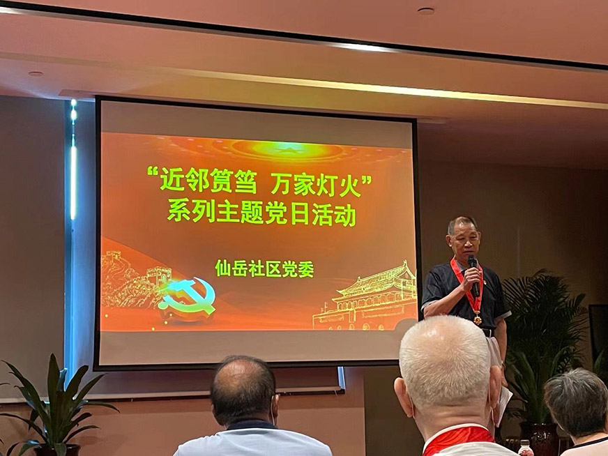 最后,仙岳社區(qū)老黨員朱喜田分享了他1976年作為灤平鐵道兵11師第五十三團(tuán)副營長,參與唐山大地震搶修鐵路舟橋的經(jīng)歷。雖然長期的鐵路工作,讓朱喜田老人落下不少職業(yè)病,但他依然積極樂觀,始終把“熱血鑄就鋼鐵大動(dòng)脈”作為人生的座右銘。脫下軍裝,轉(zhuǎn)換陣地,他積極參與社區(qū)事務(wù)、定期為黨員上黨課,用實(shí)際行動(dòng)繼續(xù)弘揚(yáng)抗震精神,發(fā)揮先鋒模范作用,讓黨旗在基層社區(qū)高高飄揚(yáng)。