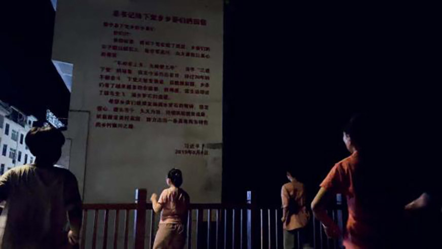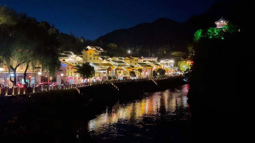深藍(lán)夜空下的下黨鄉(xiāng)燈火通明,橋邊的白樓上,是習(xí)近平總書記寫給下黨鄉(xiāng)鄉(xiāng)親們的回信,“經(jīng)過30年的不懈奮斗,下黨天塹變通途、舊貌換新顏,鄉(xiāng)親們有了越來越多的幸福感、獲得感,這生動(dòng)印證了弱鳥先飛、滴水穿石的道理。”