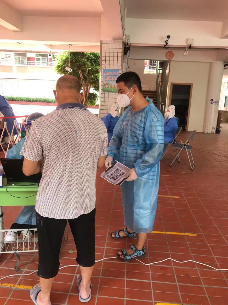 7月30日,疫情突然來襲,廈門市啟動三級應急響應,重點區(qū)域緊鑼密鼓開啟了全員核酸檢測工作。這場“與病毒爭分奪秒賽跑”的戰(zhàn)役,時間緊、任務重、人力緊缺,全和開發(fā)黨總支積極響應控股黨委號召,迅速吹響增援抗疫前線的集結號,連夜部署,火線奔赴戰(zhàn)“疫”一線——湖明小學核酸檢測點,協(xié)助社區(qū)開展疫情防控工作,用行動踐行初心、用實踐展現(xiàn)黨史學習教育成效。