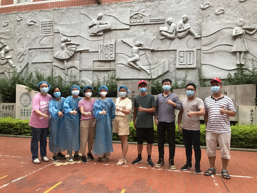 盡管隊員們幾乎徹夜未眠,31日清晨7點,湖明小學門口,全和第一支抗疫志愿者隊伍10人全部準時集結到位。在領隊招商部經(jīng)理邱慧瓊的帶領下,主動對接街道社區(qū)工作人員,領取工作任務。很快,隊員們各就各位、迅速上崗,與醫(yī)務人員、社區(qū)工作人員擰成一股繩:測量體溫、維持秩序;指引登記、答疑解惑;上門動員、分批引導,登記錄入,面對不會用手機預約的老人、預約條形碼不規(guī)范的群眾,隊員們細致耐心地指導、不厭其煩地重復答疑,用微笑化解疫情之下群眾的焦躁心情,全力協(xié)助核酸檢測工作,用實際行動踐行國企擔當。