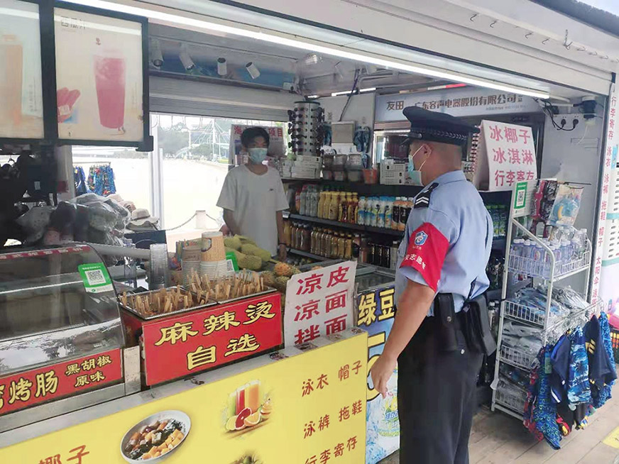 與此同時,觀音山旅游公司第一時間落實(shí)疫情防控相關(guān)要求,緊急部署加強(qiáng)企業(yè)防疫防控生產(chǎn)工作:迅速、有序組織員工核酸檢測,三天內(nèi)全體員工已全部完成第一輪、第二輪檢測;第一時間向商戶宣傳了防疫知識,引導(dǎo)商戶自覺做好防控疫情的措施;組織環(huán)島路綜合巡查隊(duì)立即對轄區(qū)內(nèi)各商鋪、攤規(guī)點(diǎn)全面開展疫情防控安全巡查工作,檢查經(jīng)營人員是否按要求佩戴口罩、環(huán)境消殺情況等,并再次強(qiáng)調(diào)避免人員聚集,相互間務(wù)必保持一定的安全距離,如發(fā)現(xiàn)異常立即上報,有效提高了商戶的防范意識,加大對疫情防控的重視度,真正做到“防患于未然”。