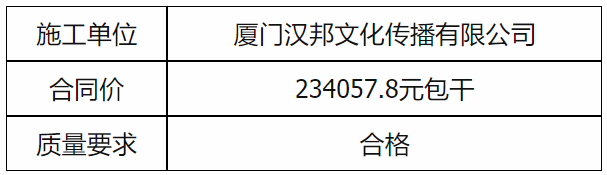 根據(jù)招投標(biāo)管理辦法、思明控股辦[2021]14號(hào)文《采購(gòu)招標(biāo)管理辦法》的相關(guān)規(guī)定,我司負(fù)責(zé)投資建設(shè)的開(kāi)元寶邸四期(F-05地塊)小區(qū)導(dǎo)向牌制作安裝工程直接發(fā)包廈門(mén)漢邦文化傳播有限公司實(shí)施,現(xiàn)通過(guò)思明控股網(wǎng)站于2021年12月9日至2021年12月13日進(jìn)行成交結(jié)果公示,內(nèi)容如下:
