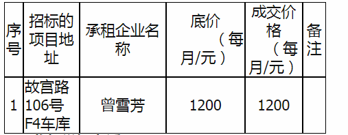 故宮路106號F4車庫房產(chǎn)招租成交公告