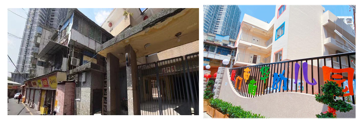 為加快補齊教育短板,拓寬教育資源供給渠道,根據(jù)廈門市政府2020年8月5日召開“關(guān)于研究教育相關(guān)工作”專題會議精神,鷺京針織廠舊廠房改造為普惠性幼兒園--廈門市南華幼兒園,由思明教育公司負責運營管理。歷經(jīng)三年多的加固、裝修和改造,南華幼兒園從一座承載不少老廈港人記憶的荒廢舊廠房蛻變成為廈港片區(qū)孩子們的成長樂園,并于2021年2月正式開園。