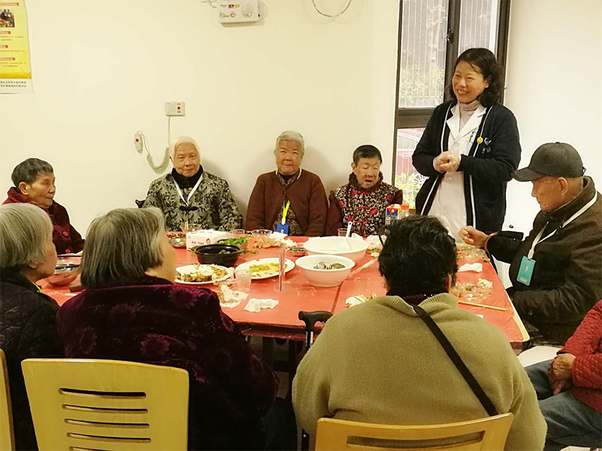 忙活了一天,廚房出菜了,樓層13桌的傳菜由護工負責,一樓餐廳4桌的傳菜由后勤行政管理部門的姑娘小伙子負責,大家開心地為我們公寓的長輩們服務,獻上自己的愛心。一桌桌琳瑯滿目的菜,一個個穿梭忙碌的身影,為老人夾喜歡吃的菜,幫忙老人剝蝦、盛湯,跟老人們敘家常,今日的源泉山莊仿佛成了“源泉大飯店”,與飯店不同的是,大伙兒比酒店服務員還貼心,就像自己的家。看著老人們開心地吃著,大家都露出了會心的笑容,一些爺爺奶奶也高興得舉起飲料跟其他老人干杯,跟身邊的“服務員”干杯,大家互道新的一年健康平安,幸??鞓?!富有涵義的十道菜,寓意十全十美,溫馨的年夜飯隨著最后一道餃子上桌后,在大家的祝福聲中圓滿結(jié)束。我們祝愿天下老人新春快樂!健康長壽!祝愿所有員工開心幸福!好運長伴!我們的年夜飯,您說好不好,歡迎您明年一起來參加。