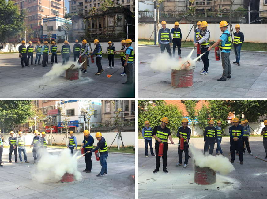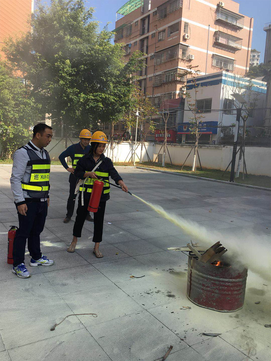 演練開始,首先是對(duì)干粉滅火器的操作使用,隊(duì)員們采取兩兩分組,搖瓶,除封,拔銷,滅火,沉著冷靜,有條不紊,基本做到一次性完成滅火任務(wù),這對(duì)于平時(shí)很少實(shí)戰(zhàn)經(jīng)驗(yàn)的員工來說實(shí)屬難得。