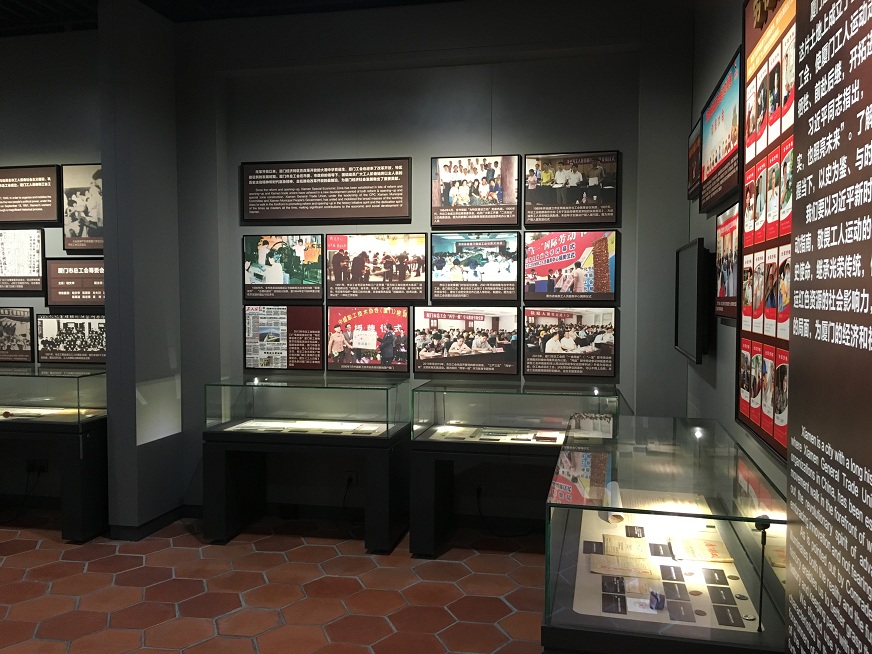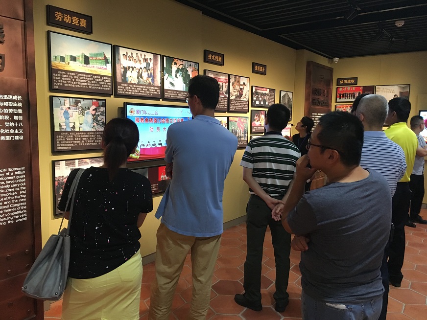 陳列館分為三部分,一樓是廈門工運(yùn)史展,二樓是改革開放40年廈門工會(huì)工作成果展,三樓是羅揚(yáng)才、楊世寧烈士工作場景復(fù)原。全體黨員干部認(rèn)真傾聽現(xiàn)場工作人員的講解,了解廈門早期產(chǎn)業(yè)工人的誕生、發(fā)展史以及改革開放40年廈門總工會(huì)工作成果。