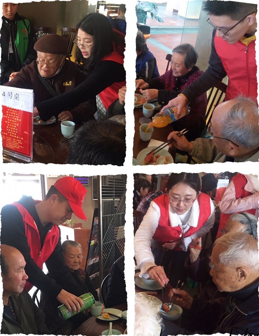 年夜飯過程中,志愿者們?yōu)樾袆?dòng)不便的老人夾菜、倒水,端起碗一口一口地喂著肢體不方便的老人,讓老人真切地感受到關(guān)愛和溫暖。