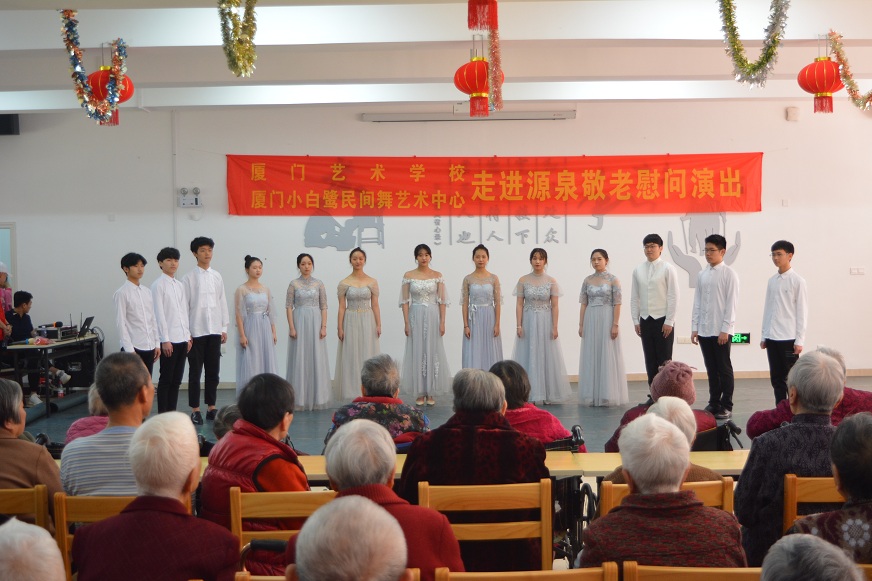 陽(yáng)春三月,萬(wàn)物復(fù)蘇。在這個(gè)美好的季節(jié)里,源泉山莊老年公寓飛來(lái)一只可愛的“小白鷺”——最受群眾喜愛的廈門小白鷺民間舞團(tuán)。這已是廈門小白鷺民間舞藝術(shù)中心和廈門藝術(shù)學(xué)校第四個(gè)年頭來(lái)到源泉山莊老年公寓,為住在老年公寓里的長(zhǎng)者們舉辦慰問演出,在今年春天又一次給長(zhǎng)者們帶來(lái)了一場(chǎng)美好的感受和豐富的文化盛宴。